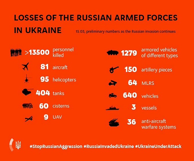यूक्रेन के विदेश मंत्रालय ने यूक्रेन में रूसी सशस्त्र बलों के नुकसान के बारे में ट्वीट कर जानकारी दी।
