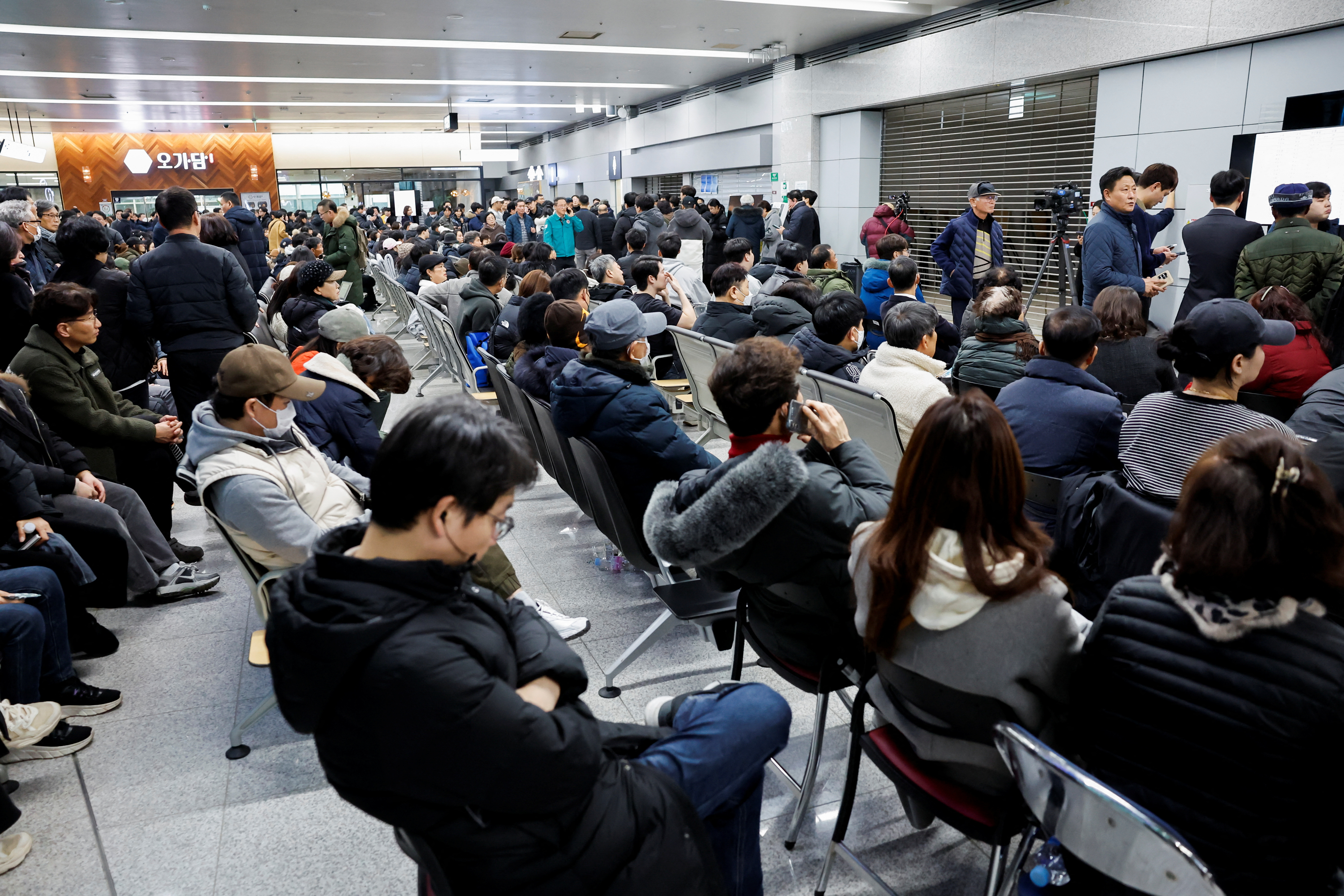 जेजू एयर बोइंग 737-800 के दुर्घटनाग्रस्त हो जाने के बाद विमान में सवार कई यात्रियों के परिजन मुआन अंतरर्राष्ट्रीय हवाई अड्डे पर पहुंचे। इसके बाद वहां पर केवल रोने की आवाज़ें गूंजने लगीं। हादसे के करीब 4 घंटों के बाद, मुआन अग्निशमन विभाग के पूर्व प्रमुख ली जियोंग-ह्योन ने पीड़ित परिवारों को संबोधित किया। इस दौरान उन्होंने कहा कि ऐसा माना जा रहा है कि विमान में सवार 181 लोगों में से अधिकांश की मृत्यु हो गई है। इस संबोधन के बाद कई लोग जोर-जोर से रोने लगे और कुछ लोग त्रासदी के बोझ तले दबकर गिर पड़े।