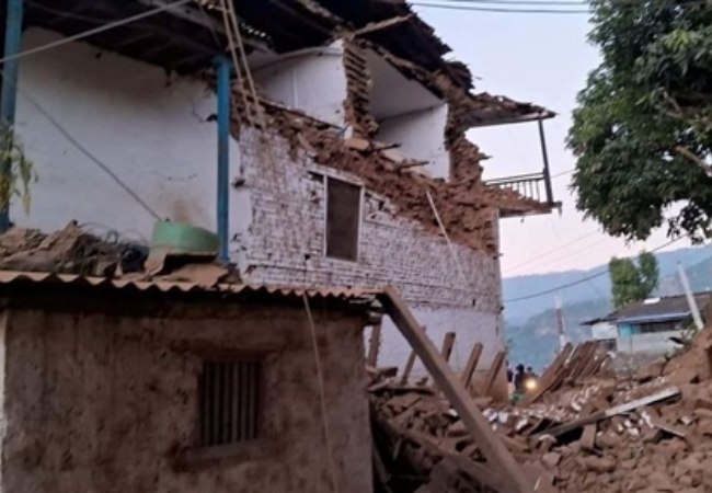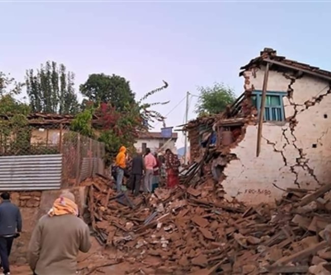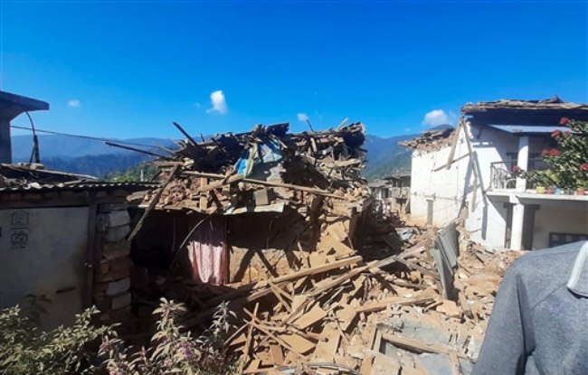 4 नवंबर, 2023 को जजरकोट जिले के पिपलडांडा गांव में आए भूकंप के बाद क्षतिग्रस्त घर खंडहर में तब्दील हो चुके हैं। सुरक्षा अधिकारियों ने 4 नवंबर को बताया कि नेपाल के सुदूर इलाके में रात भर आए भूकंप में कम से कम 132 लोग मारे गए। भूकंप के बाद लोगों को बचाने के लिए बड़ी संख्या में सेना मौजूद है। (फोटो- AFP)