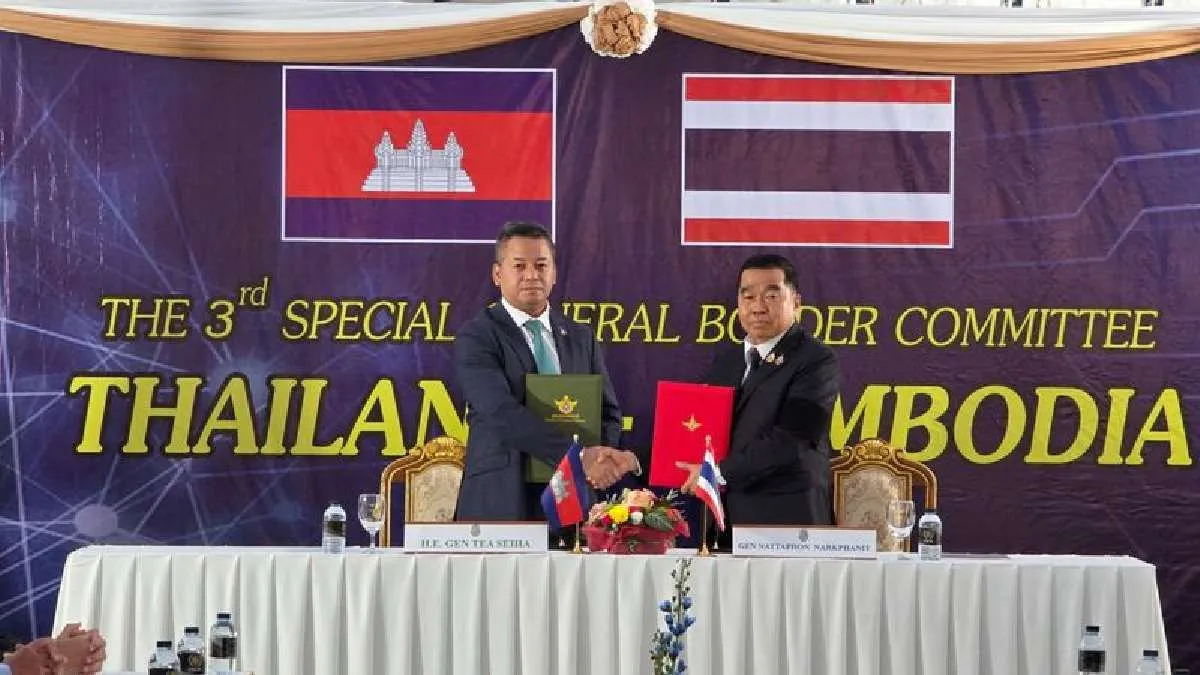 Thailand-Cambodia Ceasefire: थाईलैंड और कंबोडिया ने क्षेत्रीय दावों पर हफ्तों से जारी सशस्त्र संघर्ष को समाप्त करते हुए एक युद्धविराम समझौते पर हस्ताक ...और पढ़ें