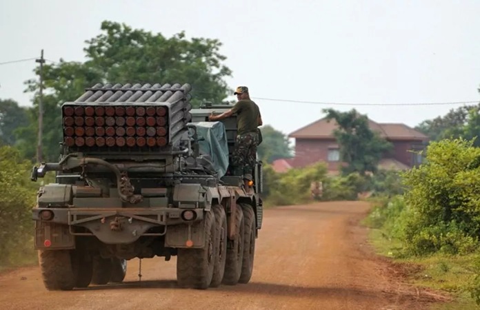 थाईलैंड और कंबोडिया के बीच चल रहा संघर्ष रविवार को चौथे दिन भी जारी रहा। दोनों देशों ने एक दूसरे पर भारी गोलाबारी की जिसमें अब मृतकों की संख्या बढ़कर 33 हो गई जबकि सीमावर्ती क्षेत्रों में 168000 से अधिक लोग अपने घरों से विस्थापित हो गए हैं। शनिवार दोपहर को आसमान में जोरदार विस्फोट हुए और प्रतिद्वंद्वी देशों के तटीय क्षेत्रों में पहली बार झड़पें हुईं।