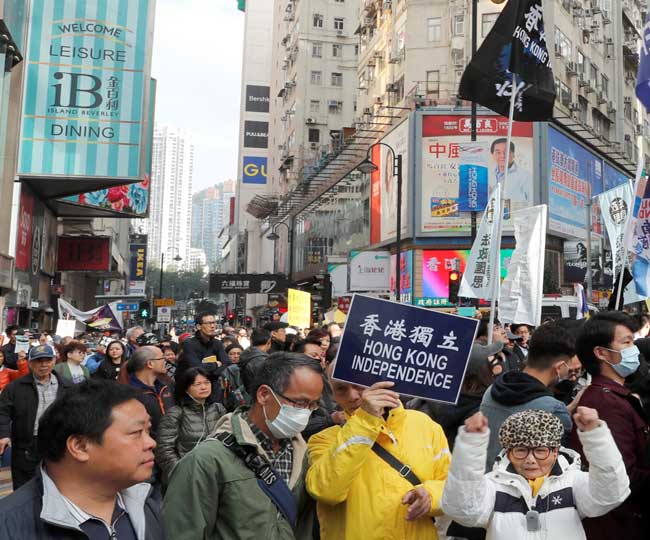 चीन के खिलाफ यहां पर प्रदर्शनों का सिलसिला काफी पुराना है। स्वायत्त क्षेत्र हांगकांग में फिर हजारों लोगों ने पूर्ण लोकतंत्र और मौलिक अधिकारों की मांग को लेकर चीन के खिलाफ प्रदर्शन किया। कुछ प्रदर्शनकारियों ने चीन से पूरी तरह आजादी की मांग भी की। हांगकांग में पिछले साल मानवाधिकार कार्यकर्ताओं को जेल में डालने, आजादी समर्थक राजनीतिक दल पर प्रतिबंध लगाने और ब्रिटिश पत्रकार विक्टर मैलेट को हांगकांग से निकालने जैसी घटनाएं हुईं। अमेरिका और ब्रिटेन समेत कई देशों ने इन पर चिंता जताई। ये घटनाएं जाहिर करती हैं कि चीन के प्रभाव के कारण हांगकांग की स्वायत्तता और आजादी कमजोर हुई है। इस प्रदर्शन के आयोजक जिम्मी शेम ने कहा, ‘नए साल के दिन प्रदर्शन में करीब 5800 लोग इकट्ठा हुए। हमने लोकतांत्रिक सुधार और चीन के राजनीतिक दमन के खिलाफ लड़ने की अपील की।’ ब्रिटेन ने वर्ष 1997 में एक देश दो प्रणाली के तहत हांगकांग को चीन को सौंपा था।