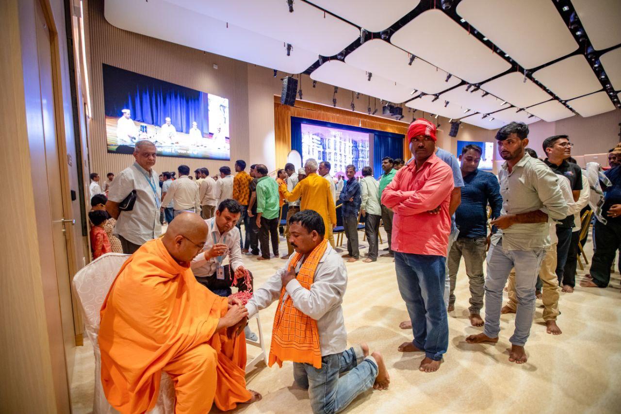 जैसे ही सभा समाप्त हुई, 2,500 श्रमिकों और भक्तों को प्रसाद के साथ एक विशेष शानदार भोजन परोसा गया। मंदिर आए कुछ मजदूरों ने अपनी खुशी भी जाहिर की। पंजाब के एक मजदूर रंजीत सिंह ने मंदिर के स्वयंसेवकों और स्वामी द्वारा दी गई गर्मजोशी पर कहा, 'आज का दिन मेरे लिए शब्दों के अभाव से भरा हुआ है, ऐसा लगता है जैसे मैं घर पर हूं, जैसे मैं अपने परिवार के साथ हूं।'