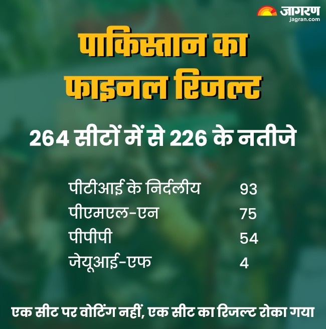 लंदन से पीएम बनने की इच्छा लिए पाकिस्तान लौटे नवाज शरीफ की पार्टी पाकिस्तान मुस्लिम लीग (एन) (PML-N) को 73 सीटें मिली। वहीं, बिलावल भुट्टो जरदारी की पाकिस्तान पीपुल्स पार्टी (PPP) ने 54 सीटें जीतीं। गौरतलब है कि 134 सीटों जीतकर बहुमत की सरकार बनाने में कोई पार्टी कामयाब न हो सकी।