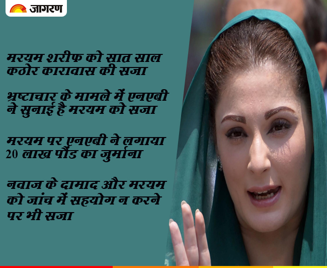 उनके साथ ही बेटी मरयम को सात साल कठोर कारावास और दामाद कैप्टन मुहम्मद सफदर को जांच में सहयोग नहीं करने पर एक साल कैद की सजा सुनाई गई। मरयम को भी जांच में सहयोग नहीं करने पर एक साल की सजा दी गई है। उनकी भी दोनों सजाएं साथ चलेंगी। मरयम पर 20 लाख पौंड का जुर्माना भी लगा है। इस समय शरीफ बीमार पत्नी कुलसुम के साथ लंदन में हैं। उनके साथ मरयम भी हैं। आपको बता दें कि कोर्ट का फैसला आने के बाद मरयम और सफदर चुनाव लड़ने के अयोग्य हो गए हैं। दोनों 25 जुलाई को होने वाले आम चुनाव में पाकिस्तान मुस्लिम लीग-नवाज (पीएमएल-एन) के उम्मीदवार हैं।