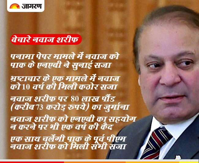 आपको बता दें कि पनामा पेपर मामले में नवाज शरीफ को पाकिस्तान के राष्ट्रीय जवाबदेही ब्यूरो (एनएबी) अदालत दस साल के कठोर कारावास की सजा सुनाई है। यह सजा उन्हें भ्रष्टाचार के एक मामले में सुनाई गई है। सजा के अलावा कोर्ट ने उनके ऊपर करीब 80 लाख पौंड (करीब 73 करोड़ रुपये) का जुर्माना भी लगाया है। इसके अलावा उन्हें एनएबी का सहयोग नहीं करने पर भी एक साल कैद की सजा सुनाई गई है। ये दोनों सजाएं एक साथ चलेंगी।