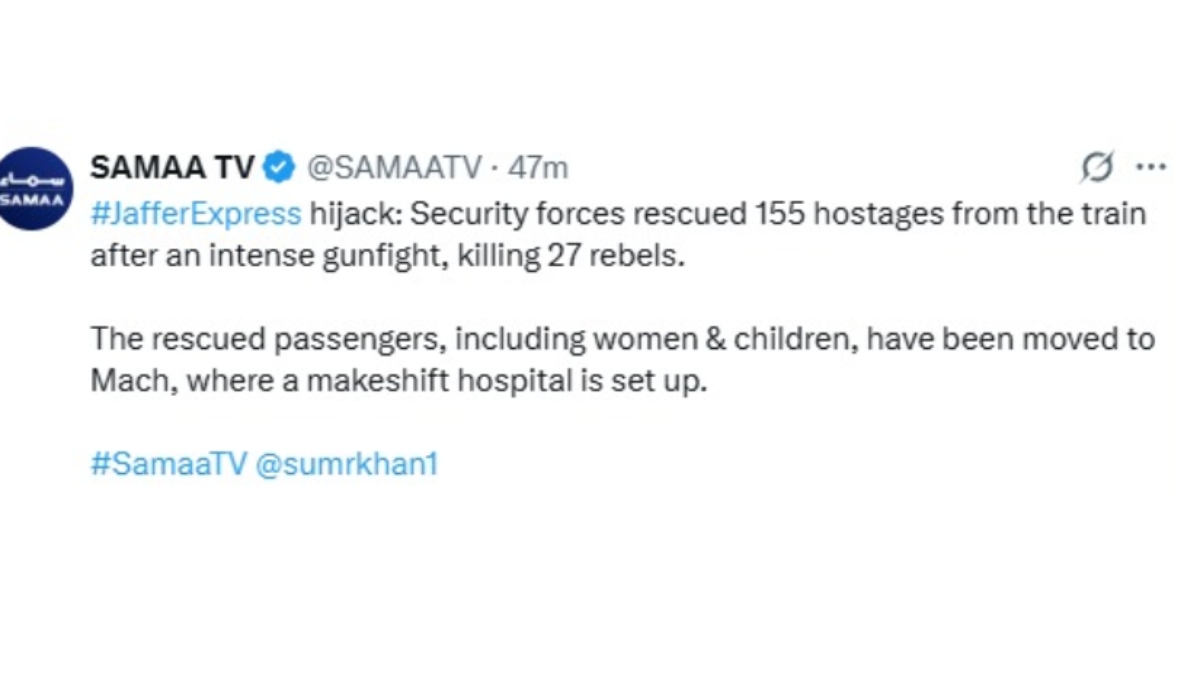 - मीडिया रिपोर्ट के अनुसार, हाईजैक ट्रेन से 100 से अधिक लोगों का किया गया है रेस्क्यू।
