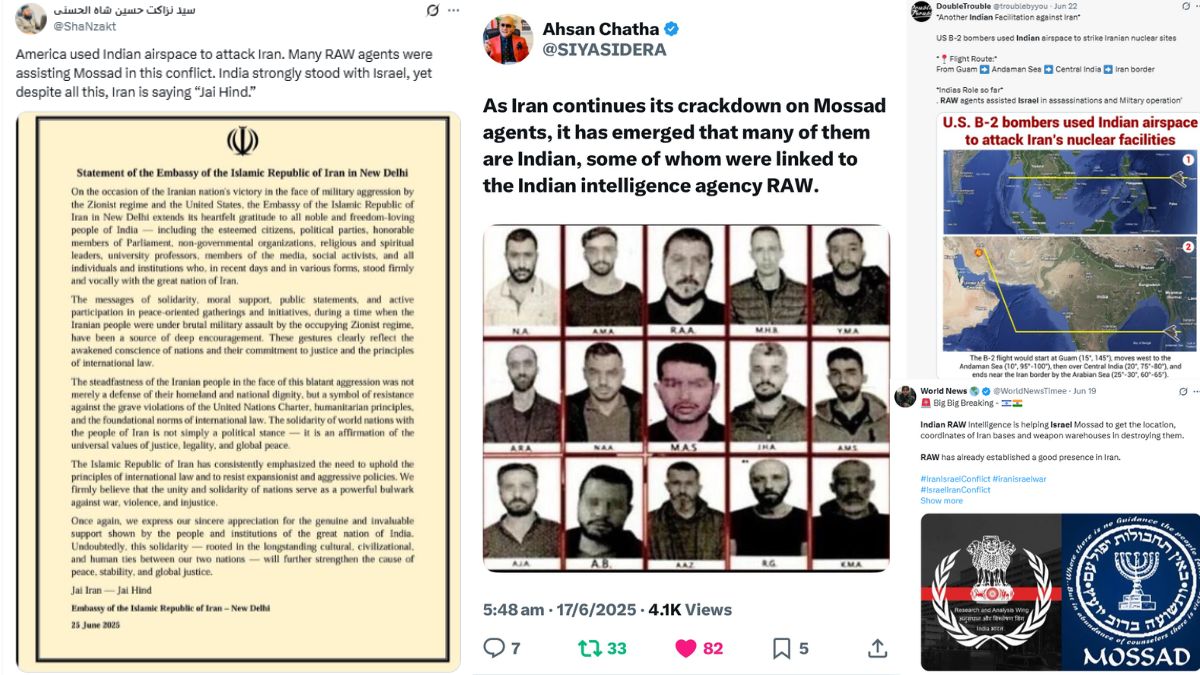 - RAW-Mossad मिलकर कर रहे हैं हत्याएं: सोशल मीडिया पर झूठ फैलाया गया कि RAW और Mossad मिलकर ईरान में हत्याएं और तोड़फोड़ कर रहे हैं, जबकि ईरान ने ऐसा कोई भी आरोप नहीं लगाया।