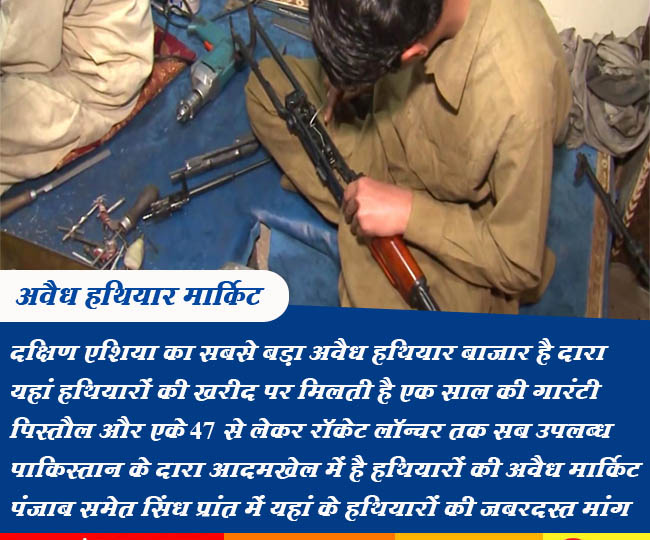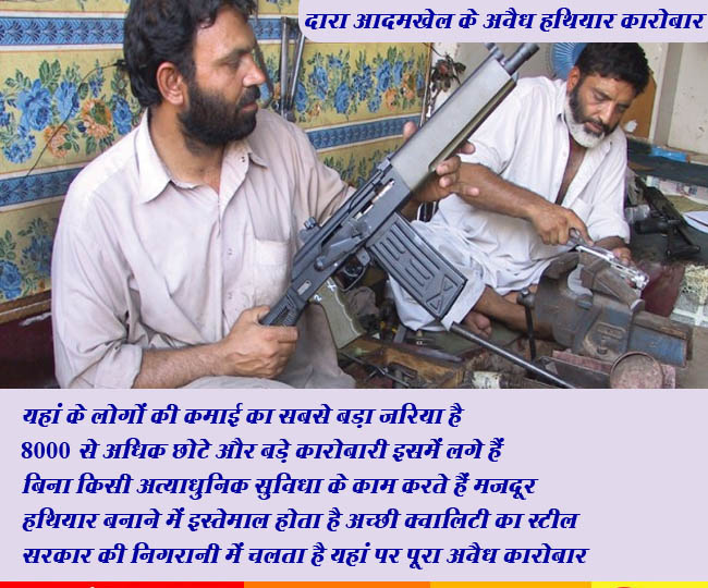 नई दिल्ली [जागरण स्पेशल]। आज हम आपको एक ऐसी जगह के बारे में बताने जा रहे हैं जिसके बारे में जानकर आप हैरान हो जाएंगे। यहां पर आपको रिवॉल्वर, राइफल, स्नाइपर राइफल से लेकर एके 47 और रॉकेट लॉन्चर तक खुलेआम बिकता है। इसके अलावा यहां पर आप इटालियन राइफल, रशियन कलाकोव, अमेरिकन म्यूजेलाइट, 9एमएम हैंडगन भी आसानी से ले सकते हैं। बस कीमत चुकाइये और ले जाएं जो आपको चाहिए। दरअसल, जिस जगह की हम बात कर रहे हैं वह जगह पाकिस्तान के खैबरपास इलाके के दारा आदमखेल में स्थित है। आपको जानकर हैरानी होगी कि यहां पर चल रहे इस कारोबार को सरकारी संरक्षण तक प्राप्त है। इससे भी ज्यादा हैरानी की बात ये है कि यहां के लोगों की आजीविका का ये सबसे बड़ा जरिया है। इससे भी बड़ी बात ये है कि यहां पर इस कारोबार में बच्चों से लेकर बड़े तक सब शामिल हैं।