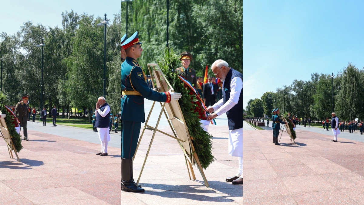 मास्को में पीएम मोदी एक सैनिक की समाधि पर पुष्पांजलि भी अर्पित की।
