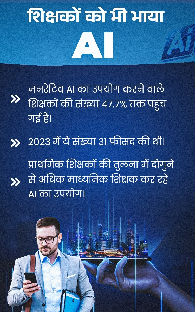 जनरेटिव AI का उपयोग करने वाले शिक्षकों की भी संख्या में इजाफा हुआ है। 2023 में जो 31 फीसद शिक्षक एआई का इस्तेमाल करते थे अब 2024 तक 47.7 फीसद हो गए हैं।